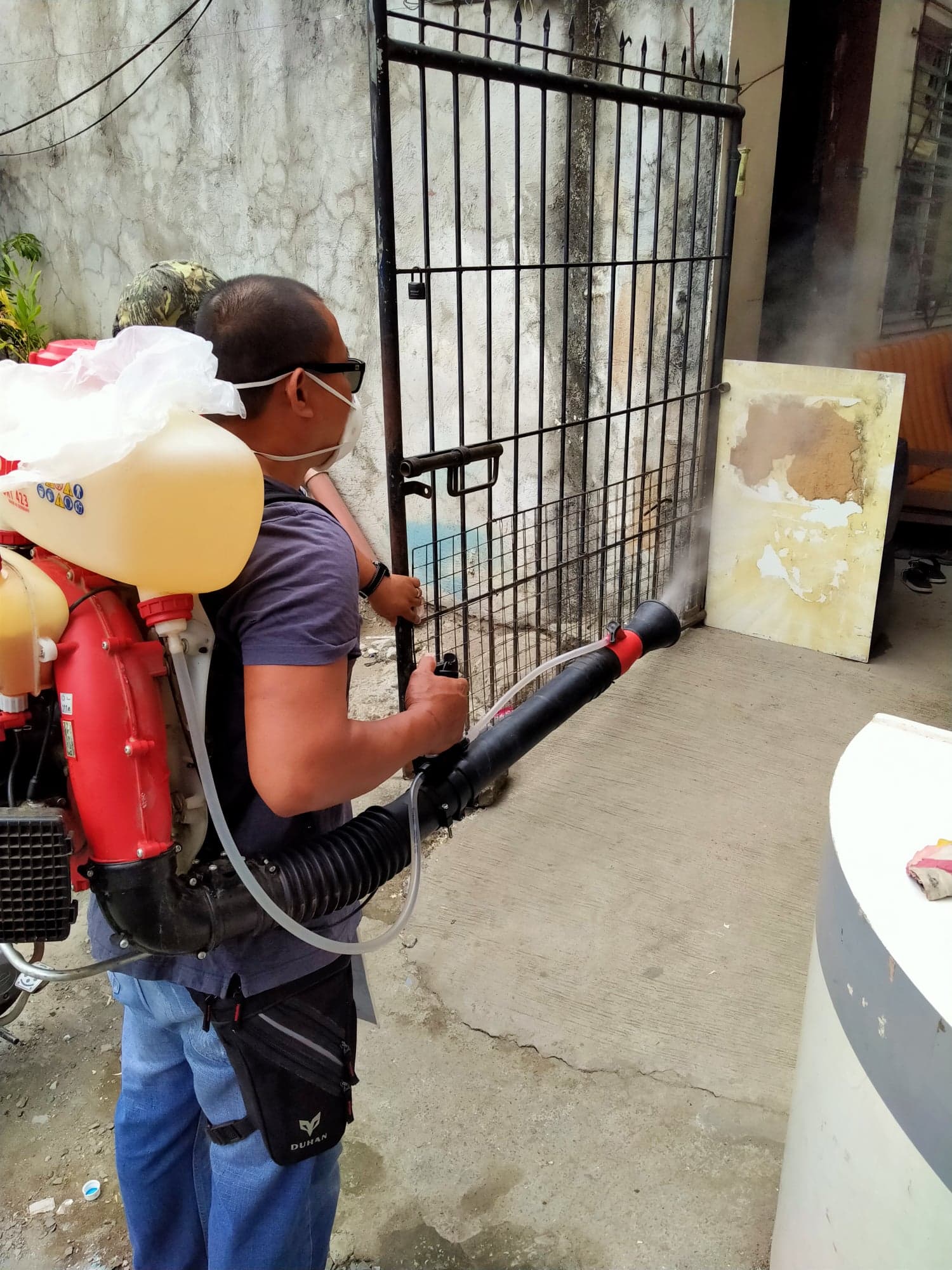 You can notice people doing the misting are not wearing proper clothes just thinking the risk of our workers doing the misting.