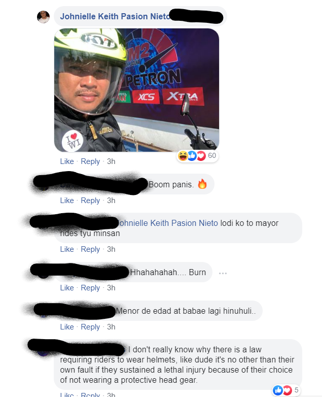Sa mga comments sa post ni Mayor Kit meron mga ng remind sa kanya na dapat mag suot sya ng helmet for safety at dapat maging role model sya. Meron isa sinagot ni Mayor Kit na sinasabi na meron sya waiver kung sakali ma injury sya eh hindi liable yung maka bangga. So yung mga hindi ba ng suot ng helmet mga naka waiver ba sila? Lahat ba ng rider ayaw mag suot ng helmet makakakuha ba nitong waiver? Kung sa rider meron waiver para hindi magsuot ng helmet meron ba waiver para hindi pag suot ng seatbelt? Meron pa naman tayo mga riders na kahit kasalanan nila d aamin at mag demand pa yung kabila ang gumastos kasi nasaktan sila.