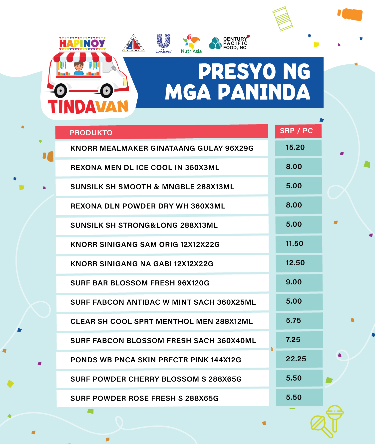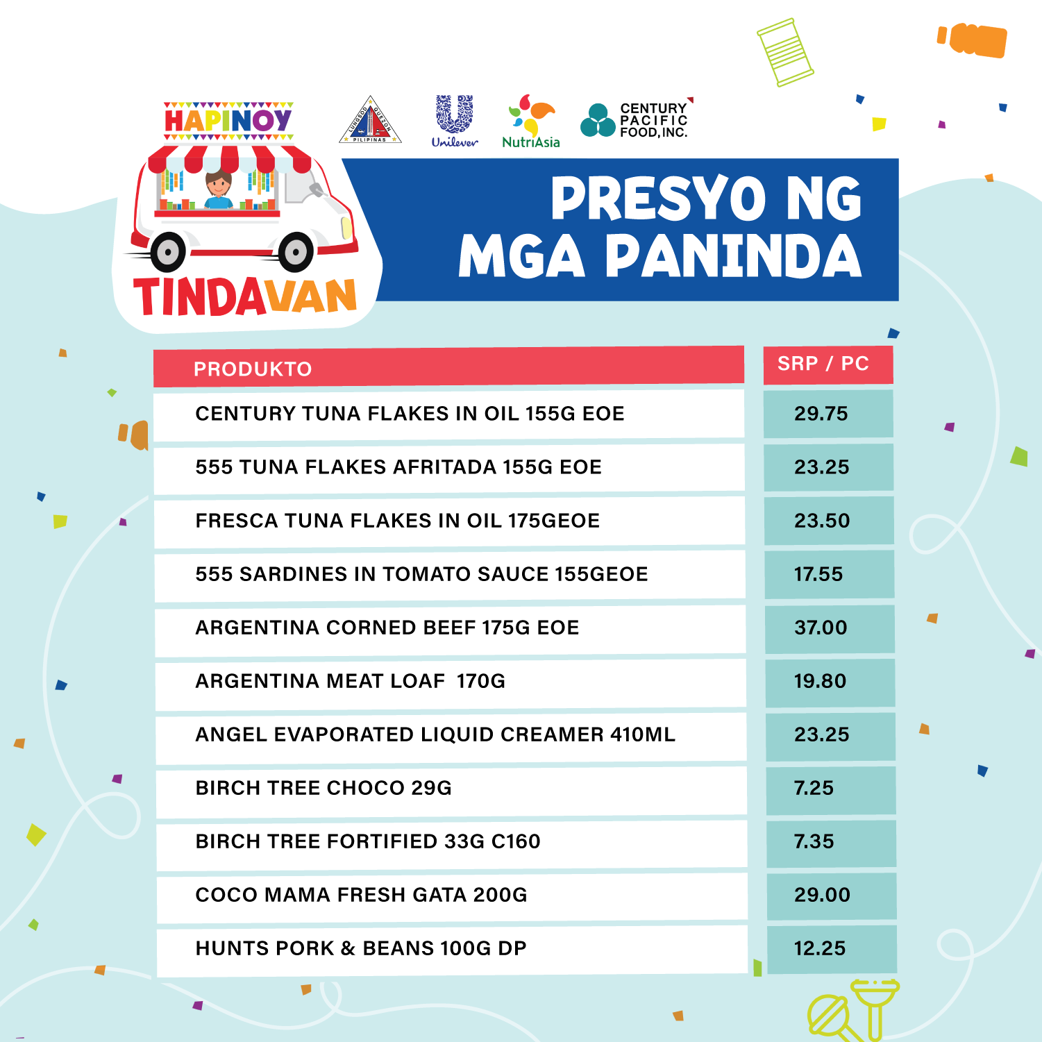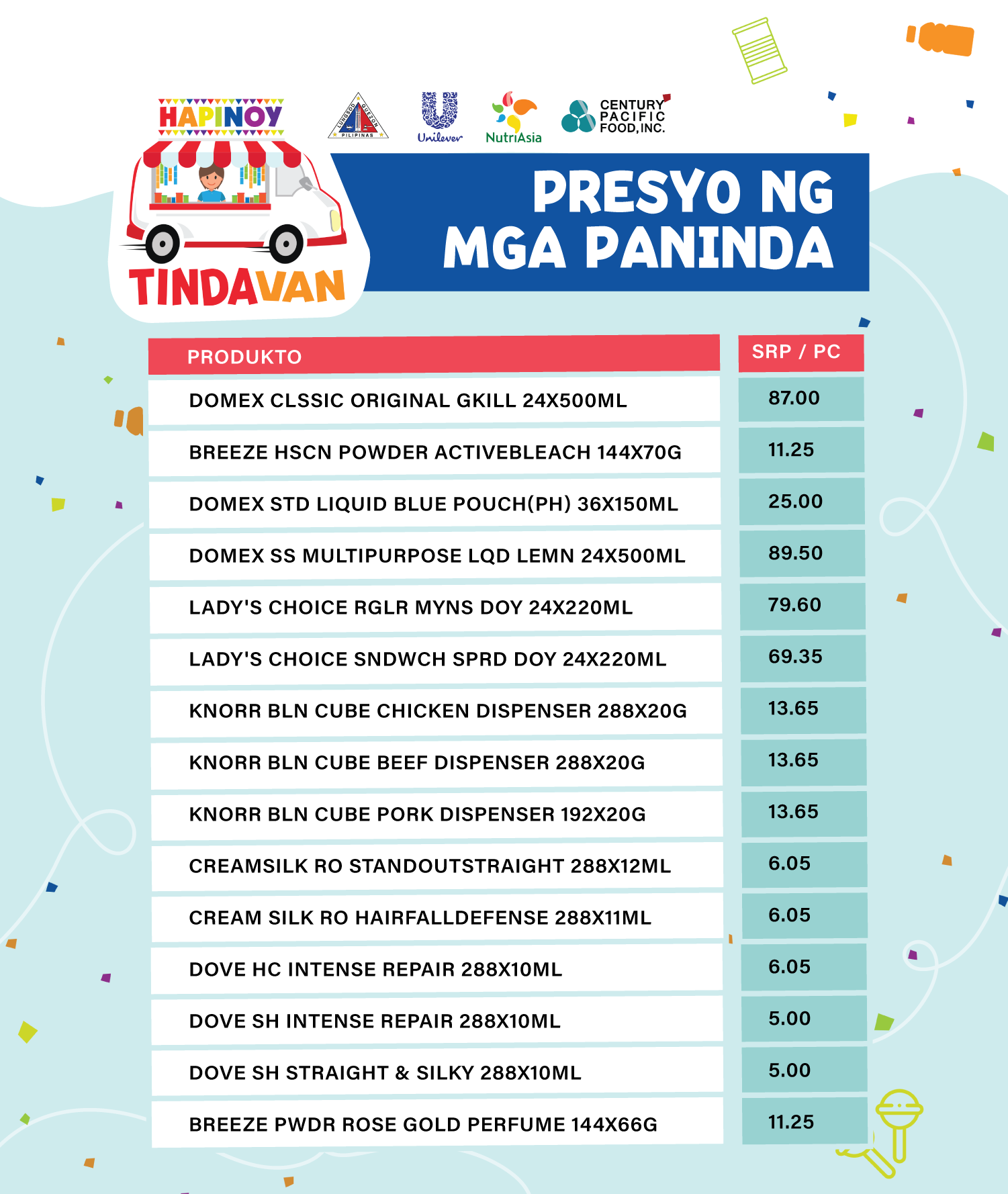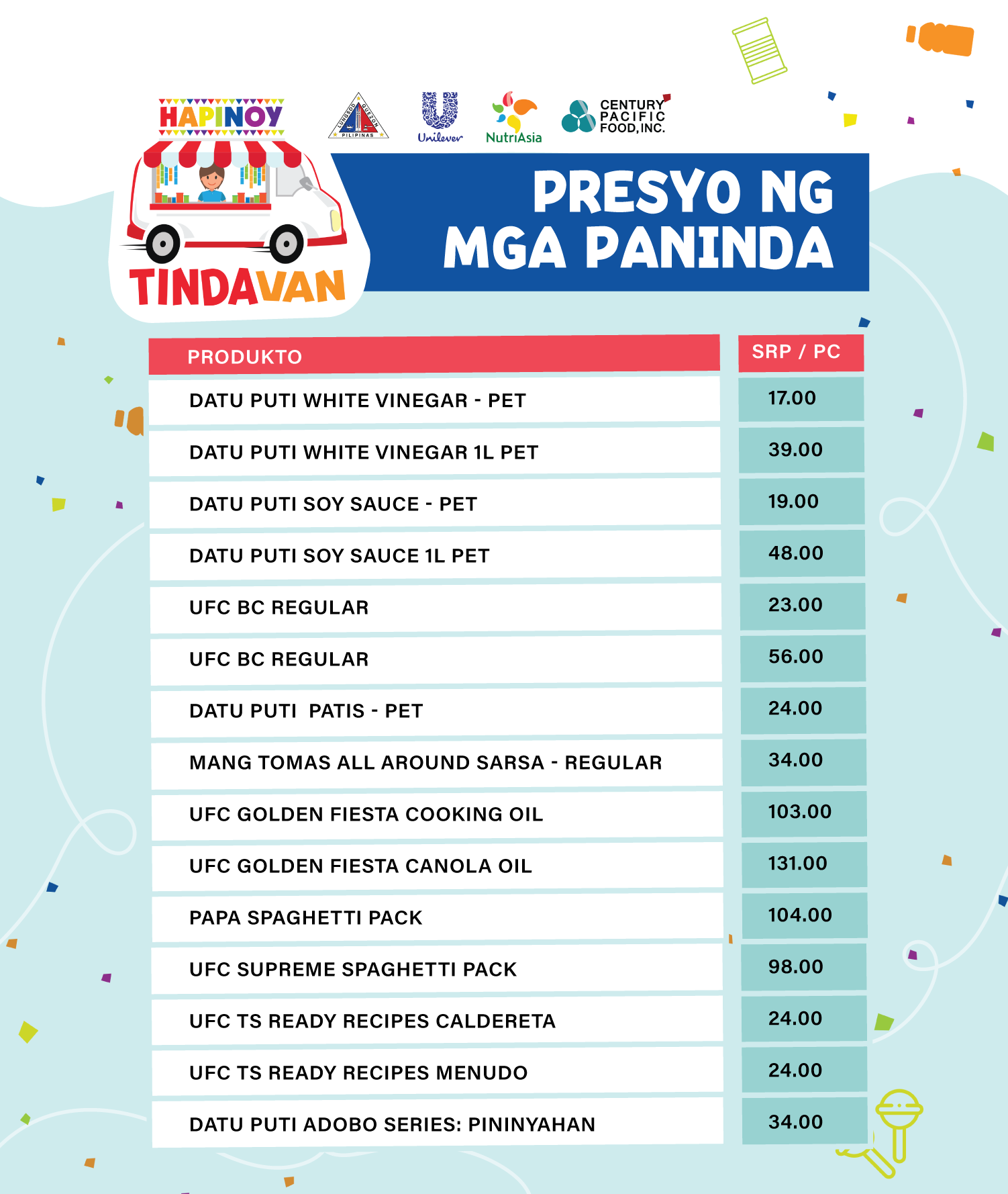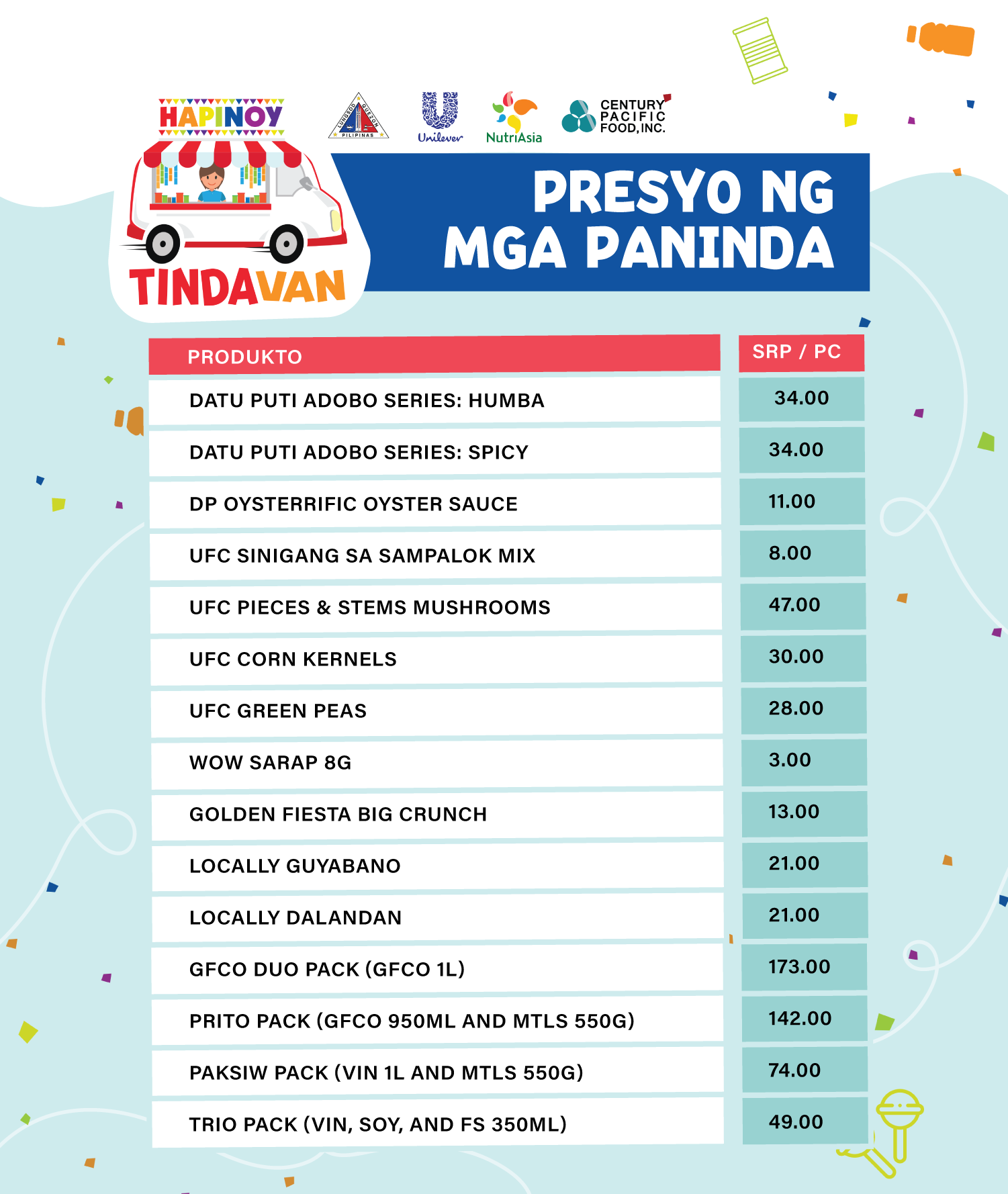 Hapinoy dala ang ibat’t ibang abot-kayang produkto mula sa Unilever, NutriAsia at Century Pacific Food, Inc.