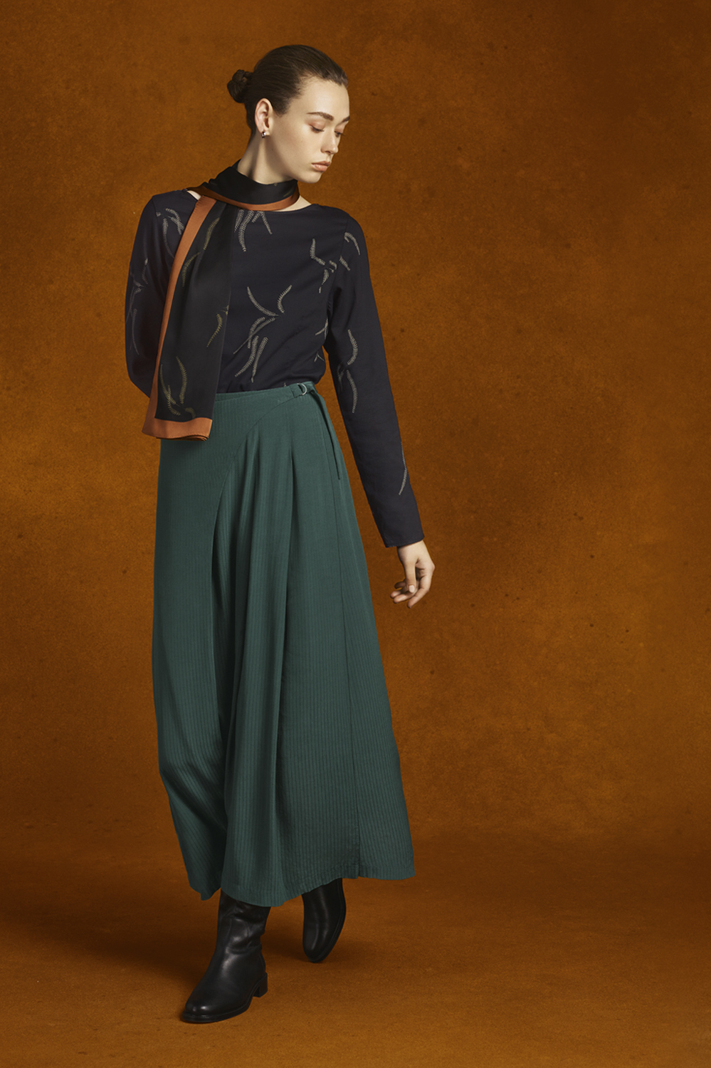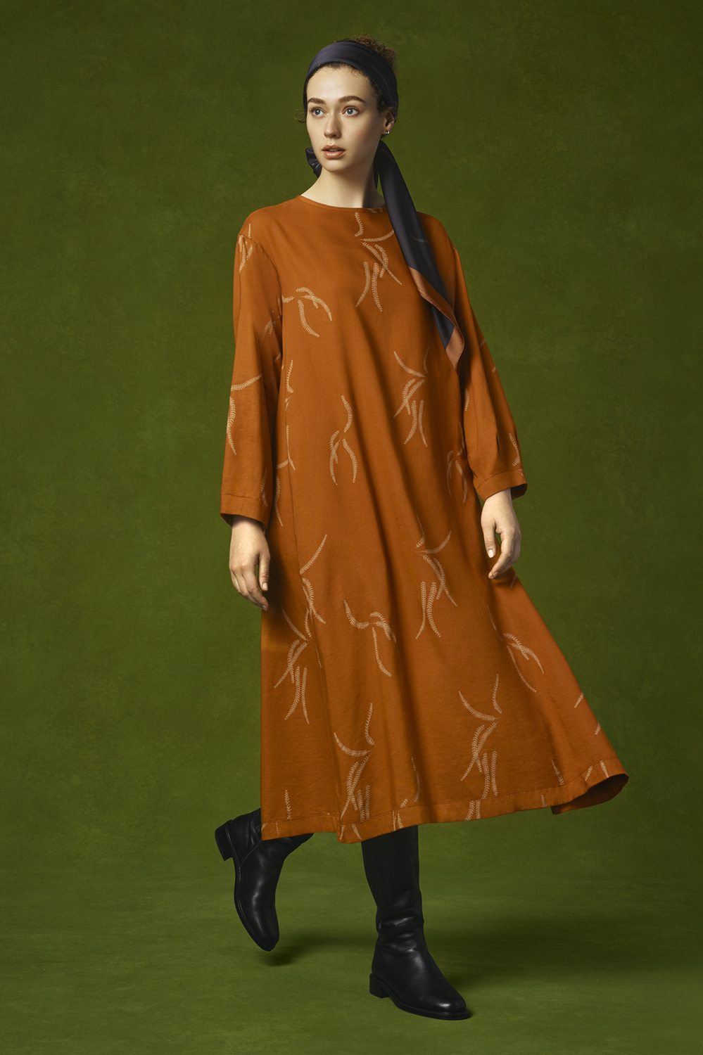 The Fall/Winter 2020 collection expresses the beauty of independent women through silhouettes and details, with an offer to help women also change inside. Textiles with leaf and grass patterns, and neutral tones of cold and warm colors schemes emphasize subtle beauty. Along with many shirt items, the lineup also incorporates details that allow outfits to reflect the mood of the day, such as tops that can be styled with just one side of the hem tucked in. Pants have also been updated with adjustable waists for a perfect fit. The collection features details that can be altered to fit the daily changes in women’s bodies and feelings.