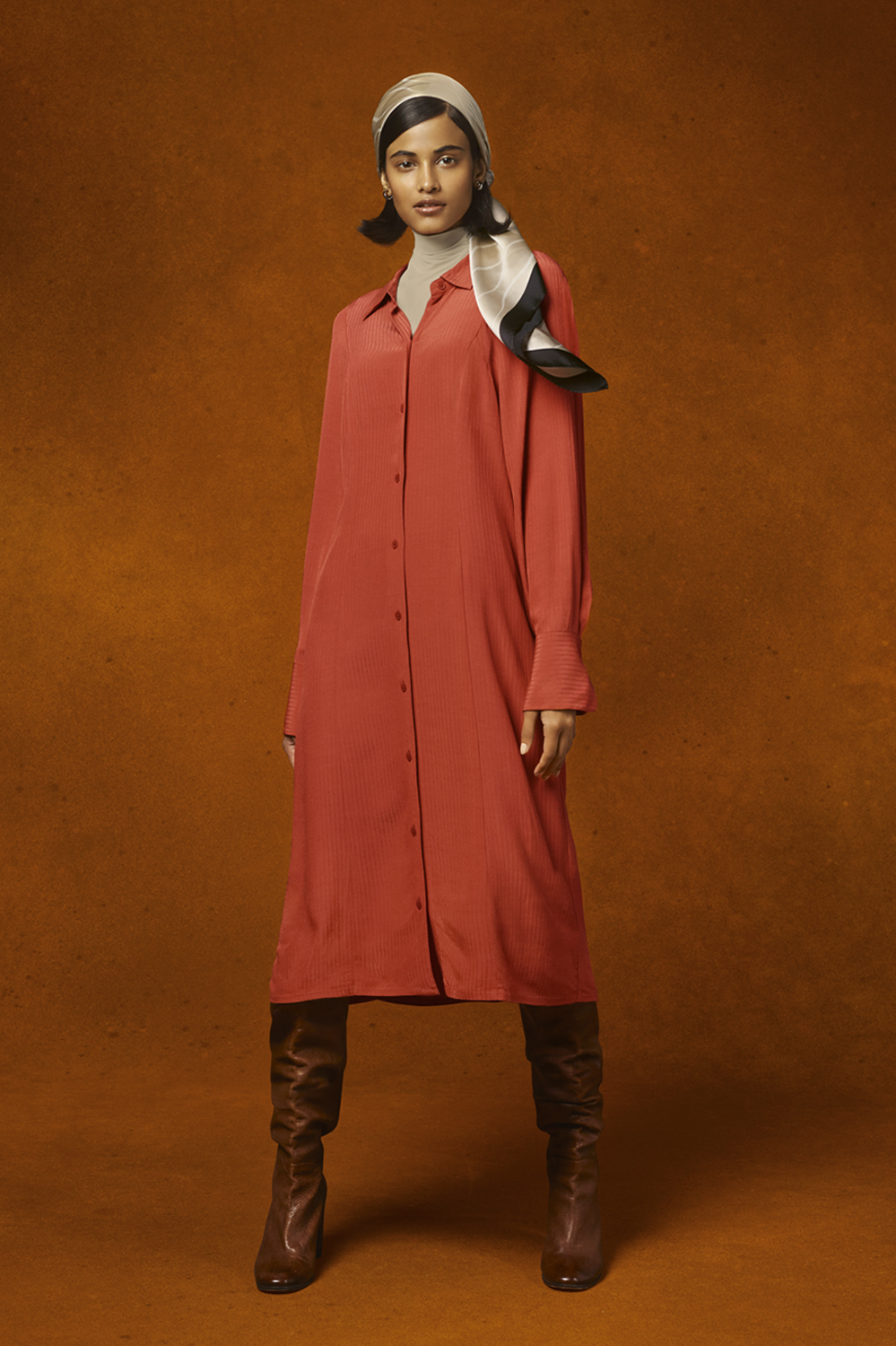 The range includes 100% silk blouses and wrap dresses as wardrobe essentials for sophisticated women. It also captures 1970s Bohemian culture through its twist pleated skirts and dresses in prints from paisley to polka dot patterns. As befitting the season, the collection also features a range of knitwear. For the first time, the collection includes items made with seamless 3D Knit technology that offer outstanding comfort and vivid patterns.
